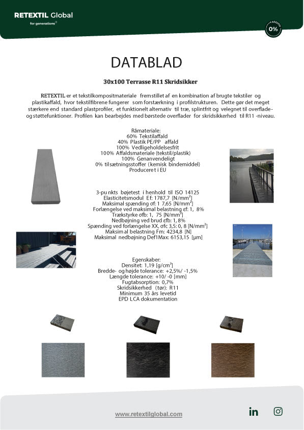 De er modstandsdygtige over for fugt, vand og lave thermor og er samtidig 40% stærkere end almindelige kompositmaterialer, hvilket gør dem ideelle til brug i det nordiske klima. Reglarne kræver ikke imprægnering, maling eller løbende vedligeholdelse. Derudover tåler de højtryksrensning, hvilket gør det nemt at fjerne grønne belægninger eller snavs uden brug af kemikalier.